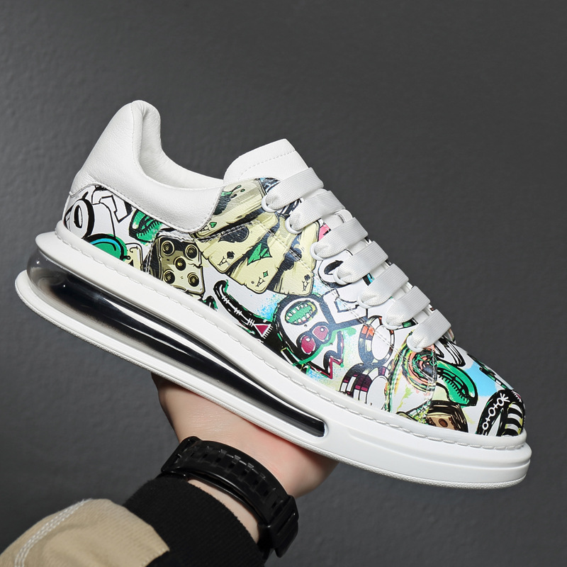 Introducing our exclusive line of men's skateboard shoes, designed for those who seek both style and functionality. These shoes encapsulate fashion, uniqueness, and personality, making a bold statement on and off the skateboard. With a low-cut design, genuine leather construction, and eye-catching prints, they are the perfect choice for any modern skater.